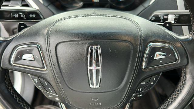 AWD, 11 Speakers, 4-Wheel Disc Brakes, ABS brakes, Adaptive Cruise Control w/Stop & Go, Adaptive suspension, Air Conditioning, All-Weather Floor Mats, Alloy wheels, AM/FM radio: SiriusXM, Auto High Beams, Auto tilt-away steering wheel, Auto-dimming door mirrors, Auto-dimming Rear-View mirror, Automatic temperature control, Brake assist, Bumpers: body-color, CD player, Climate Package, Compass, Delay-off headlights, Driver door bin, Driver vanity mirror, Dual front impact airbags, Dual front side impact airbags, Electronic Stability Control, Emergency communication system: SYNC 3 911 Assist, Enhanced Active Park Assist System, Equipment Group 300A, Exterior Parking Camera Rear, Forward Sensing System, Four wheel independent suspension, Front anti-roll bar, Front Bucket Seats, Front Center Armrest, Front dual zone A/C, Front reading lights, Fully automatic headlights, Garage door transmitter, Genuine wood dashboard insert, Genuine wood door panel insert, Heated door mirrors, Heated front seats, Heated Rear-Seats, Heated Steering Wheel, High-Intensity Discharge Headlights, Illuminated entry, Knee airbag, Lane Keeping System, Leather steering wheel, Low tire pressure warning, Memory seat, Multi-Contour Front Seats w/Active Motion, Navigation System, Occupant sensing airbag, Outside temperature display, Overhead airbag, Overhead console, Panic alarm, Panoramic Roof, Passenger door bin, Passenger vanity mirror, Pedestrian Detection, Power door mirrors, Power driver seat, Power passenger seat, Power steering, Power windows, Pre-Collision Assist, Prem Leather-Trimmed Micro-Perf Heated/Cooled (G), Radio data system, Radio: Lincoln Premium Sound System w/Single CD, Rain Sensing Wipers, Rear anti-roll bar, Rear Parking Sensors, Rear reading lights, Rear seat center armrest, Rear window defroster, Remote keyless entry, Security system, Speed control, Speed-sensing steering, Speed-Sensitive Wipers, Split folding rear seat, Steering wheel memory, Steering wheel mounted audio controls, SYNC 3, Tachometer, Technology Package, Telescoping steering wheel, Tilt steering wheel, Traction control, Trip computer, Turn signal indicator mirrors, Variably intermittent wipers, Ventilated front seats, Wheels: 19" Magnetic Painted Machined-Aluminum, Wheels: 19" Polished Machined-Aluminum, Windshield Wiper De-Icer.