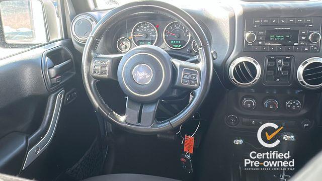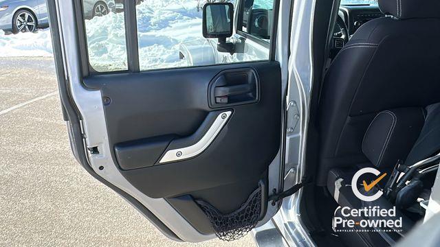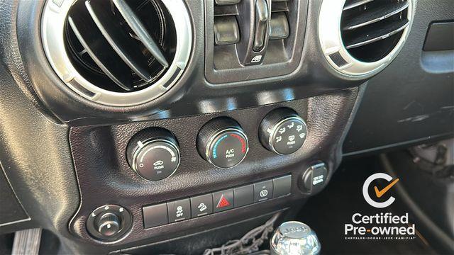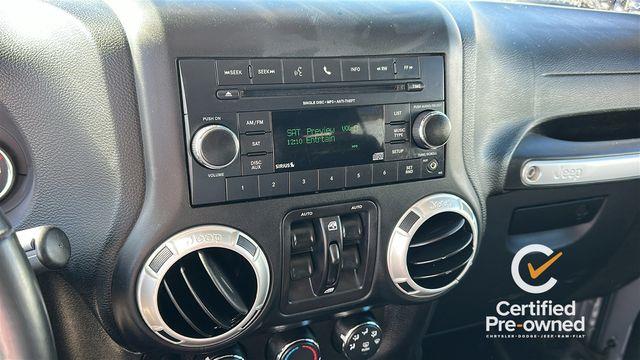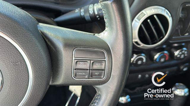 18" x 7.5" Polished Satin Carbon Wheels, 3.21 Rear Axle Ratio, 4-Wheel Disc Brakes, 8 Speakers, ABS brakes, Air Conditioning, Alloy wheels, AM/FM radio: SiriusXM, Audio Jack Input for Mobile Devices, Auto-dimming Rear-View mirror, Black 3-Piece Hard Top, Body Color Appliques Front Bumper, Body Color Appliques Rear Bumper, Body Color/Accent Color Grille, Brake assist, CD player, Cloth Seats w/Adjustable Head Restraints, Compass, Connectivity Group, Delete Sunrider Soft Top, Driver door bin, Driver Height Adjuster Seat, Driver vanity mirror, Dual front impact airbags, Electronic Stability Control, Freedom Panel Storage Bag, Front anti-roll bar, Front Bucket Seats, Front Center Armrest w/Storage, Front fog lights, Front reading lights, Front Seat Back Map Pockets, Fully automatic headlights, Heated door mirrors, Heavy Duty Suspension w/Gas Shocks, Illuminated entry, Integrated roll-over protection, Leather steering wheel, Low tire pressure warning, Manufacturer's Statement of Origin, Occupant sensing airbag, Outside temperature display, Panic alarm, Passenger door bin, Passenger vanity mirror, Power door mirrors, Power steering, Power windows, Quick Order Package 24G, R1234YF A/C Refrigerant, Radio data system, Radio: 130, Rear anti-roll bar, Rear Window Defroster, Rear Window Wiper/Washer, Remote keyless entry, Remote Start System, Security system, Speed control, Split folding rear seat, Steering wheel mounted audio controls, Sunrider Soft Top, Tachometer, Tilt steering wheel, Tire Pressure Monitoring Display, Traction control, Trip computer, Uconnect Voice Command w/Bluetooth, Variably intermittent wipers, Vehicle Information Center.