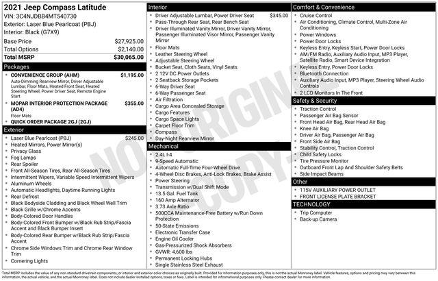 Standard Equipments on 2021 Jeep Compass Latitude in Avon, CT