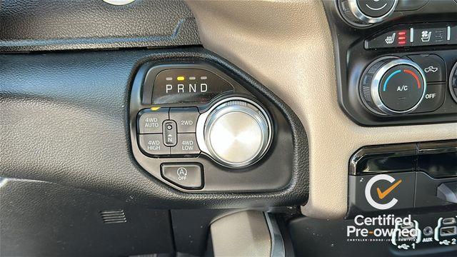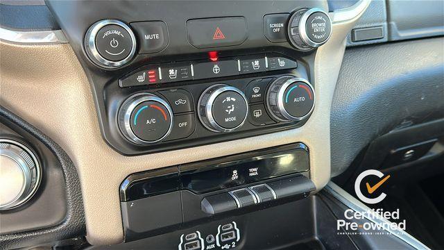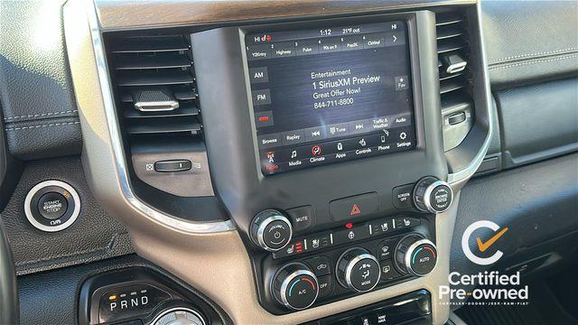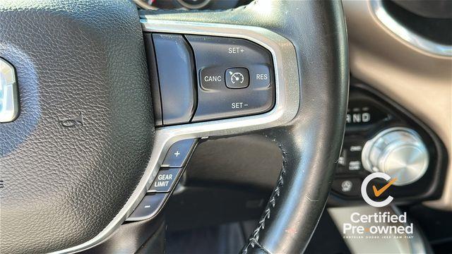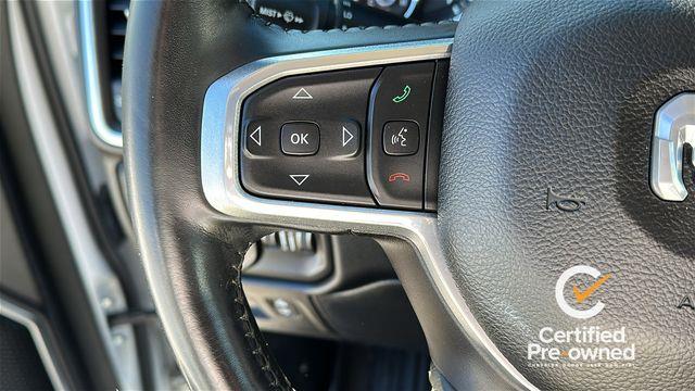 10 Speakers, 3 Rear Seat Head Restraints, 3.21 Rear Axle Ratio, 4 Way Front Headrests, 4-Wheel Disc Brakes, 48V Belt Starter Generator, 8.4" Touchscreen Display, ABS brakes, Adjustable pedals, Air Conditioning, Alloy wheels, AM/FM radio: SiriusXM, Apple CarPlay, Apple CarPlay/Android Auto, Audio memory, Auto-dimming door mirrors, Auto-dimming Rear-View mirror, Automatic temperature control, Brake assist, Bumpers: chrome, Chrome Exterior Mirrors, Compass, Delay-off headlights, Driver door bin, Driver Seat Memory, Driver vanity mirror, Dual front impact airbags, Dual front side impact airbags, Electronic Stability Control, For More Info, Call 800-643-2112, Front anti-roll bar, Front Center Armrest w/Storage, Front dual zone A/C, Front fog lights, Front reading lights, Front Seat Back Map Pockets, Front wheel independent suspension, Fully automatic headlights, Garage door transmitter, Google Android Auto, GPS Antenna Input, Heated door mirrors, Heated Front Seats, Heated front seats, Heated Steering Wheel, Heated steering wheel, Illuminated entry, Integrated Center Stack Radio, Integrated Voice Command w/Bluetooth, Leather steering wheel, Leather Trim 40/20/40 Bench Seat, Low tire pressure warning, Memory seat, MOPAR Front & Rear Rubber Floor Mats, Occupant sensing airbag, Outside temperature display, Overhead airbag, Overhead console, Panic alarm, ParkView Rear Back-Up Camera, Passenger door bin, Passenger vanity mirror, Pedal memory, Power 4-Way Driver Lumbar Adjust, Power 4-Way Passenger Lumbar Adjust, Power 8-Way Driver & Passenger Seats, Power door mirrors, Power driver seat, Power passenger seat, Power steering, Power windows, Quick Order Package 27H Laramie, Radio data system, Radio: Uconnect 4 w/8.4" Display, Rear anti-roll bar, Rear seat center armrest, Rear step bumper, Rear window defroster, Remote keyless entry, Security system, SiriusXM Radio Service, SiriusXM Satellite Radio, Speed control, Split folding rear seat, Steering wheel mounted audio controls, Tachometer, Telescoping steering wheel, Tilt steering wheel, Traction control, Trip computer, Turn signal indicator mirrors, Variably intermittent wipers, Ventilated Front Seats, Ventilated front seats, Voltmeter, Wheels: 18" x 8" Aluminum Base Painted, Wheels: 20" x 9" Premium Paint/Polished.