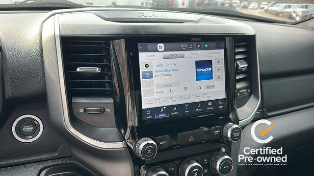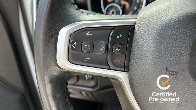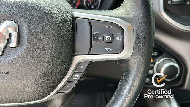 2nd Row In Floor Storage Bins, 3 Rear Seat Head Restraints, 3.21 Rear Axle Ratio, 4 Way Front Headrests, 4-Wheel Disc Brakes, 48V Belt Starter Generator, 4G LTE Wi-Fi Hot Spot, 6 Speakers, 8.4" Touchscreen Display, ABS brakes, Air Conditioning, Air Conditioning ATC w/Dual Zone Control, All R1 High Radios, All Radio Equipped Vehicles, Alloy wheels, AM/FM radio, Apple CarPlay, Auto-Dimming Exterior Driver Mirror, Auto-Dimming Rear-View Mirror, Big Horn Badge, Big Horn Level 1 Equipment Group, Black Exterior Mirrors, Black Premium Power Mirrors, Bluetooth Handsfree Phone & Audio, Brake assist, Bumpers: chrome, Class IV Receiver Hitch, Cloth Bench Seat, Cluster 3.5" TFT Color Display, Cluster 7.0" TFT Color Display, Compass, Connected Travel & Traffic Services, Connectivity - US/Canada, Convex Wide-Angle Mirror Insert, Delay-off headlights, Disassociated Touchscreen Display, Driver door bin, Dual front impact airbags, Dual front side impact airbags, Electronic Stability Control, Emergency communication system: SiriusXM Guardian, Exterior Mirrors Courtesy Lamps, Exterior Mirrors w/Heating Element, Exterior Mirrors w/Supplemental Signals, For Details, Visit DriveUconnect.com, Front anti-roll bar, Front Center Armrest w/Storage, Front fog lights, Front reading lights, Front Seat Back Map Pockets, Front wheel independent suspension, Fully automatic headlights, Global Telematics Box Module (TBM), Glove Box Lamp, Google Android Auto, GPS Antenna Input, GPS Navigation, HD Radio, Heated door mirrors, Heavy-Duty Engine Cooling, Illuminated entry, Integrated Center Stack Radio, Integrated Voice Command w/Bluetooth, Leather steering wheel, Low tire pressure warning, MOPAR Front & Rear Rubber Floor Mats, Occupant sensing airbag, Outside temperature display, Overhead airbag, Overhead console, Panic alarm, ParkView Rear Back-Up Camera, Passenger door bin, Passenger vanity mirror, Power 2-Way Driver Lumbar Adjust, Power 8-Way Driver Seat, Power Adjustable Pedals, Power door mirrors, Power steering, Power windows, Power-Folding Mirrors, Protection Group, Quick Order Package 27Z Big Horn, Radio data system, Radio: Uconnect 3 w/5" Display, Radio: Uconnect 5 Nav w/8.4" Display, Radio: Uconnect 5 W w/8.4" Display, Rear 60/40 Folding Seat, Rear anti-roll bar, Rear Dome w/On/Off Switch Lamp, Rear Power Sliding Window, Rear seat center armrest, Rear step bumper, Rear Window Defroster, Remote keyless entry, SiriusXM Radio Service, SiriusXM Satellite Radio, SiriusXM w/360L, Speed control, Split folding rear seat, Steering wheel mounted audio controls, Sun Visors w/Illuminated Vanity Mirrors, Tachometer, Telescoping steering wheel, Tilt steering wheel, Tow Hooks, Traction control, Trip computer, Universal Garage Door Opener, USB Host Flip, Variably intermittent wipers, Voltmeter, Wheels: 18" x 8" Cast-Aluminum Painted, Wheels: 20" x 9" Aluminum Chrome Clad (WRK).