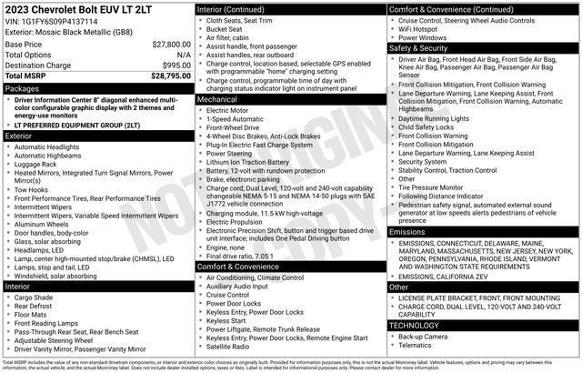 Standard Equipments on 2023 Chevrolet Bolt Euv LT in Avon, CT