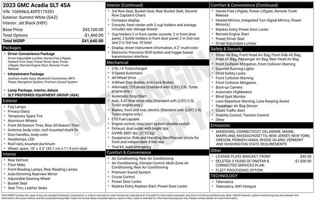 Standard Equipments on 2023 GMC Acadia SLT in Avon, CT