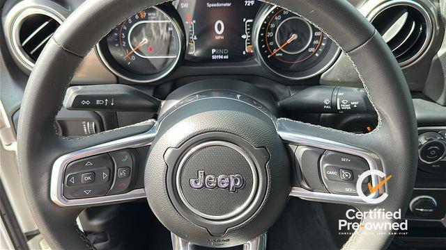**Certified**, **4 Wheel Drive**, Bluetooth Phone/Audio, **Apple car play / Android Auto**, 3.73 Rear Axle Ratio, 4-Wheel Disc Brakes, 9 Speakers, ABS brakes, Air Conditioning, Alloy wheels, AM/FM radio: SiriusXM, Automatic temperature control, Compass, Delay-off headlights, Driver door bin, Driver vanity mirror, Dual front impact airbags, Dual front side impact airbags, Emergency communication system, Front anti-roll bar, Front dual zone A/C, Front fog lights, Front reading lights, Fully automatic headlights, Garage door transmitter, Illuminated entry, Integrated roll-over protection, Low tire pressure warning, Power steering, Power windows, Quick Order Package 24G Overland (DISC), Radio data system, Radio: Uconnect 4C Nav w/8.4" Display, Rear reading lights, Rear Sliding Window, Rear Window Defroster, Remote keyless entry, Selec-Speed Control, Speed control, Steering wheel mounted audio controls, Tachometer, Telescoping steering wheel, Tilt steering wheel, Traction control, Trip computer, Variably intermittent wipers, Voltmeter, Wheels: 18" x 7.5" Granite Crystal Aluminum (DISC).
